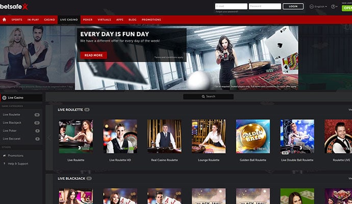 There are different variations of roulette, blackjack, poker and baccarat, which the enthusiasts of the games with live dealers can choose from. Every game is streamed with high quality, without any delays on the player’s screen. The live games, which are included in the catalogue of Betsafe are powered by the leader software provider and namely Evolution Gaming. Thus, the users of Betsafe can be sure in the quality and fairness of every live game.