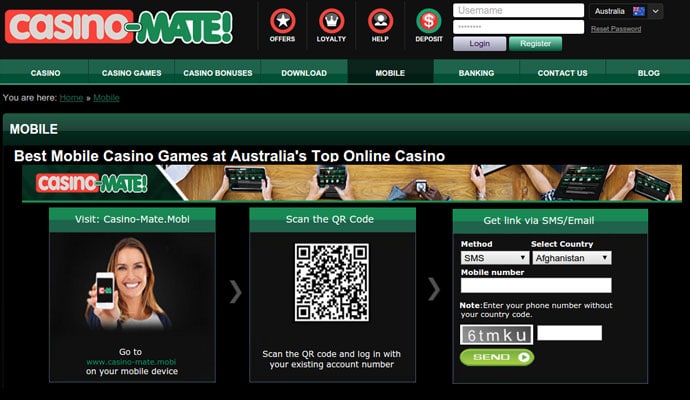 If you experience any issues during mobile play, you can easily reach the Casino-Mate support agents via the live chat facility as they are at players’ service around the clock. Another option is to scan the QR code on the casino’s website and request a download link for the app to be sent on you email or as a text message.